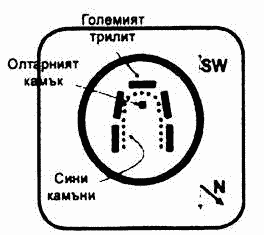 — Не, не… и аз бих избрал Олтарния камък — отговори Лаклан. — Той е във фокуса на композицията. Направен е от син камък, сложен е заедно с оригиналния пръстен от сини камъни, така че е по-стар от трилитите. И за наше щастие си е все още на мястото.