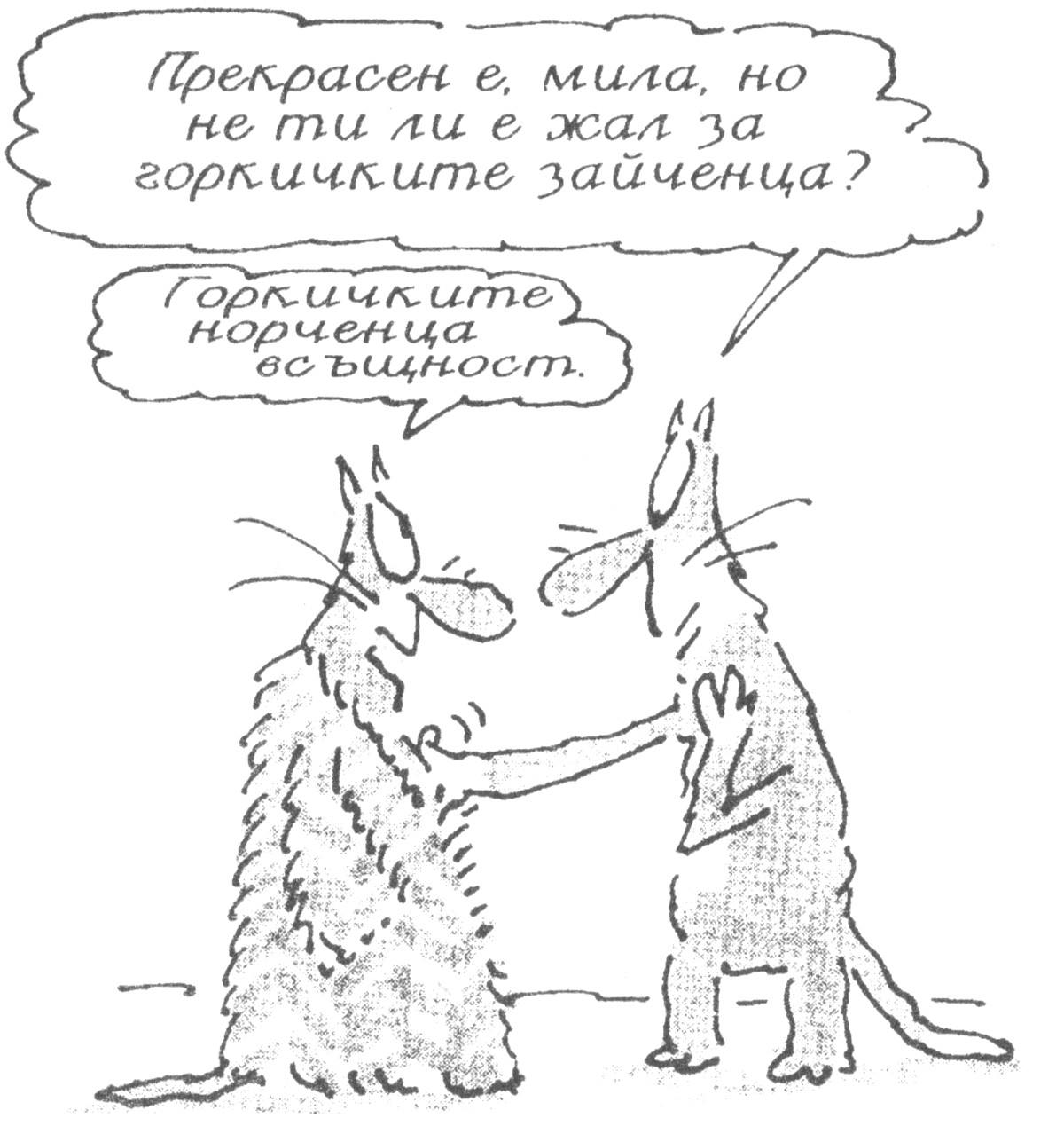 Имахме едни приятели вегани[1] които се оправяха с консервата с котешка храна по същия начин, по който хората в Селафийлд се оправят с нещата, които започват да цъкат. В крайна сметка изработиха вегетарианска диета, включваща като глезотия от време на време риба. Котаракът им беше млад сиамец. Направо цъфтеше от тая храна. Че как няма да цъфти. Излизаше, мотаеше се из органичния кози обор и изяждаше повече плъхове и мишки, отколкото собствениците му — топли вечери, което не беше трудно. Но се отнасяше с голямо разбиране към тях и никога не ги оставяше да разберат. От време на време го засичахме да припка из градината с нещо рунтаво в устата и той ни мяташе заговорничещи, изпълнени с неудобство погледи, като методистки свещеник, спипан да си пийва биричка.