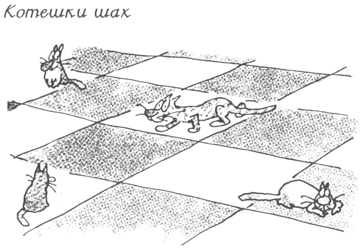 За него за игрално поле е необходима площ колкото малко селце. Могат да участват до дузина котки. Всяка котка си избира изгодна позиция — покрив, стената на бараката за въглища, стратегически ъгъл или, в тихите селца, средата на пътя — и си кибичи там. Вие си мислите, че просто си е намерила хубаво местенце на припек, докато не разберете, че всяка котка вижда поне още две други котки. Ходовете се осъществяват с един вид високоскоростно промъкване, като коремът почти докосва земята. Точните правила са малко неясни за хората, но като че целта на играта е да виждаш всички други котки, докато самия тебе не те виждат. Това обаче е просто умозрително разсъждение и като нищо може да се окаже, че истинската игра се провежда на някакво мистично висше ниво, недостижимо за обикновения човешки ум, както е с крикета.