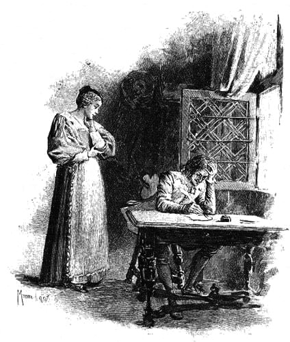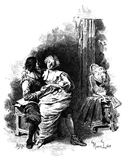 Едва тогава д’Артанян си спомни нежните погледи на Кети, срещите в преддверието, на стълбището, в коридора, допирането с ръка всеки път, когато го срещнеше, и сподавените й въздишки; но погълнат от желанието да се хареса на знатната дама, той беше пренебрегнал прислужничката: който иска да улови орел, не обръща внимание на врабчето.