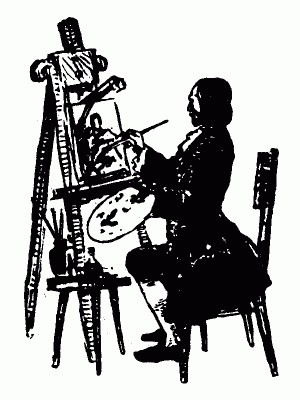 Хартийката, която служеше на художника да си изтънява молива, беше пъхната зад портрета и се подаваше от триножника. Художникът понадигна крайчето й, престори се, че уж заостря графита и написа на книжката: