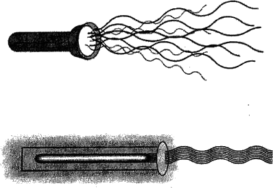 Фигура 14.3. Нормалната светлина (горе) е некохерентна — светлинните вълни са хаотични и не трептят във фаза помежду си. Лазерната светлина (долу) е кохерентна — светлинните вълни трептят във фаза. Учените са открили, че мозъчните вълни също могат да постигнат подобна на лазерната кохерентност — особено тогава, когато неочаквано ни споходят творчески прозрения.