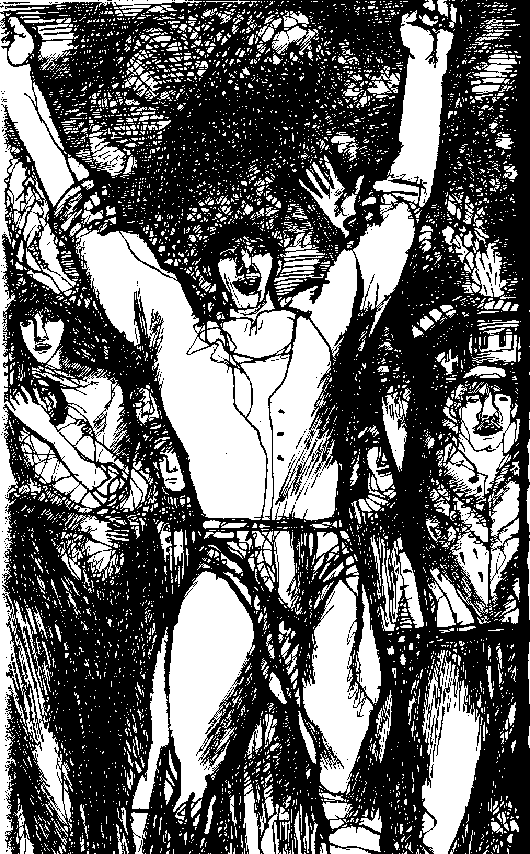 Троцки започна да прави някакви знаци с ръце. Той бе онемял, ала никой от нас не го допускаше тогава и мнозина се засмяха. Отвори уста да каже нещо, от устата му блъвнаха някакви звуци, а очите му изпъкнаха от напрежение. Най-после посочи с ръка кака Дона, взе една лъжица и започна да драска с нея по покривката на трапезата.