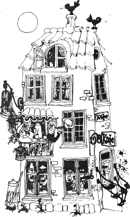 Така господин Холм и госпожа Флора седяха на балкона сред едрите, красиви цветя и малките хубави птички и щастливи сърбаха горещото кафе.