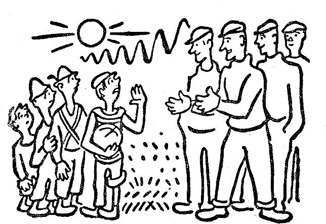 Селските момчета сведоха погледи. Някои се усмихваха смутено, други удряха с пети по тревата, а момчето, което трябваше да хвърля тъч, отпусна ръце и остави топката да се търкаля на земята.