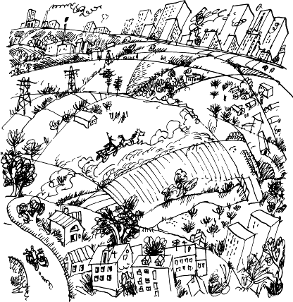 Преместих поглед от Елбрус на черноземните степи, минах Москва, приближих се до град Джобов и изведнъж ясно видях долу под нас, там, където свършваше градът, зелено поле с есенници, разрязано точно по средата от междуселски път.