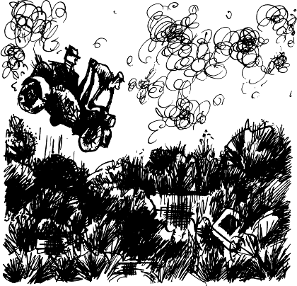 Незабавно трябваше да се вземе някакво решение и капитанът реши. Пусна Вася. Вася остана на седалката, а самият капитан прелетя над пътя и за да не падне в калта, направи двойно салто. Приземи се на банкета, здраво стъпил на краката си. По сивия му костюм нямаше нито едно петънце.