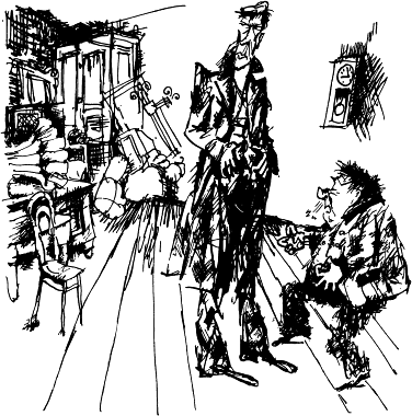 На вратата се беше изправил човек, изпръскан от глава до пети с кал, а от джобовете на коженото му палто стърчеше сивкава слама.