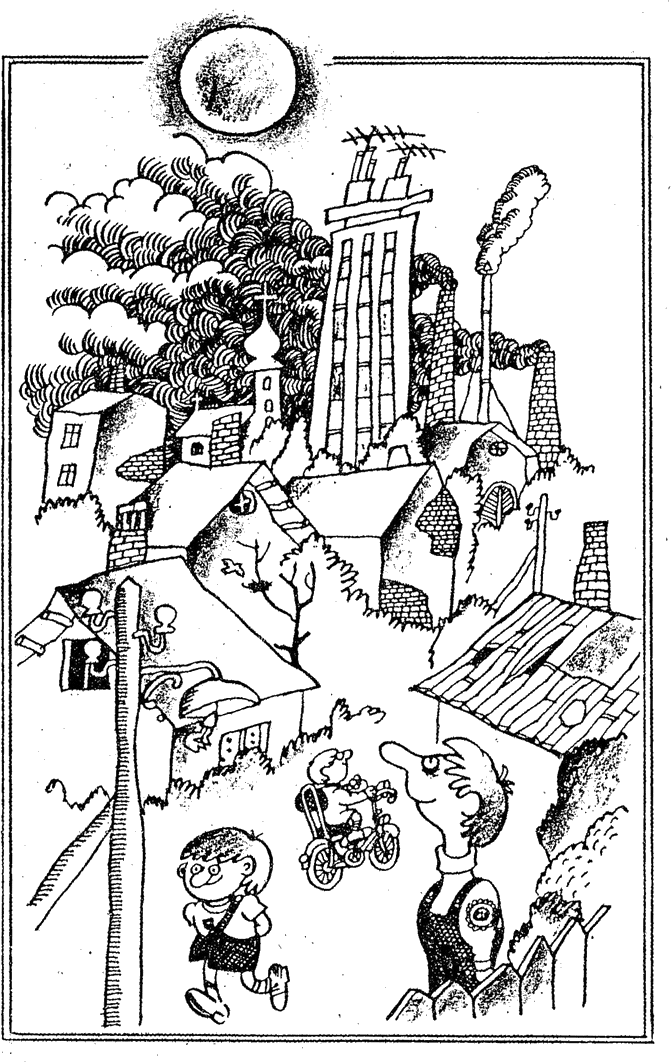 Над тях се водеше неравна битка между Слънцето и Смога. Рахитичното късно есенно Слънце изведнъж прояви такова нахалство, че на няколко места проби щита на добрия стар Смог, който обаче скоро получи подкрепления от фабриките отвъд улица „Хайнзелова“.
