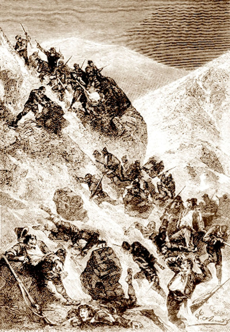 Затворен в тази броня от втвърден сняг, той бе наредил да го изтъркалят по стръмния склон с риск да падне в някоя пропаст. Сега, вече свободен, се спускаше по пътеката за Касона.
