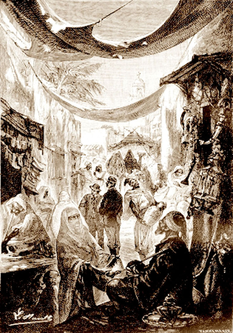 Навалицата беше вече доста голяма. Използуваха утринната хладина. Забулени до очите мавританки, еврейки с открито лице, араби, кабили, мароканци сновяха из пазара редом с малцината чужденци. Присъствието на Луиджи Ферато и Поант Пескад нямаше да направи особено впечатление.