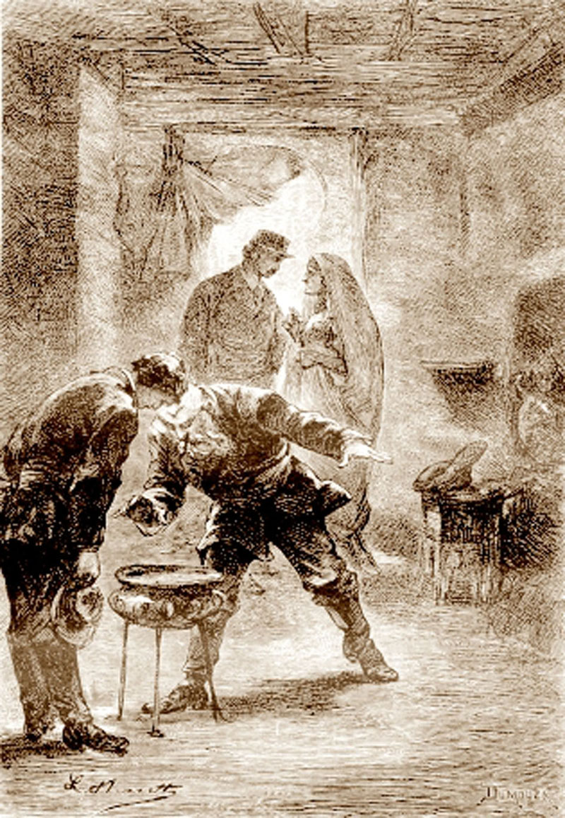 Старицата се показа отначало сдържана: но една шепа секвини[4] я направиха скоро по-любезна. Тя започна да отговаря на въпросите, които докторът задаваше, като проявяваше привидно много голямо внимание към нейния господар.
