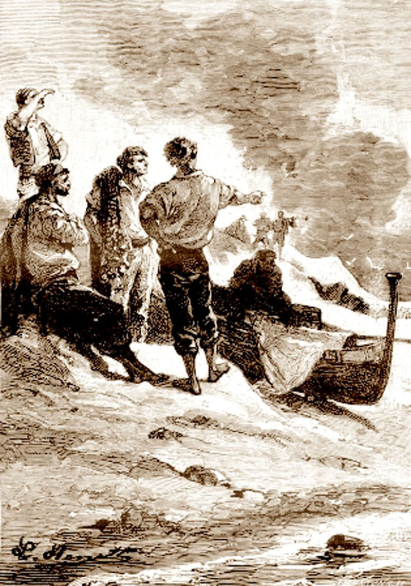 Граф Шандор и другарят му се ръкуваха сърдечно с рибаря. После минаха в задната стая, където ги чакаха два хубави сламеника с царевична шума, на които най-сетне щяха да си отпочинат след толкова умора.