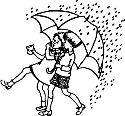 Една събота валеше такъв страхотен дъжд, че за малко да не можем да отидем до площада. Обаче взехме големия чадър на татко и все пак отидохме и купихме червени бонбони. Докато се прибирахме, вървяхме под чадъра и ядяхме бонбони, много весело беше. Пък Лота не можа дори на двора да излезе, защото валеше толкова страхотно.