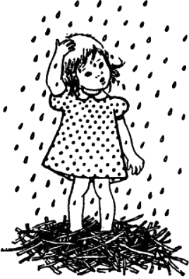 — Защо се слага тор? — попита Лота. Тогава татко каза, че всичко расте добре, като се натори. — Трябва да има и дъжд — рече Лота, защото помнеше какво беше казала мама, когато валеше толкова силно онази събота.
