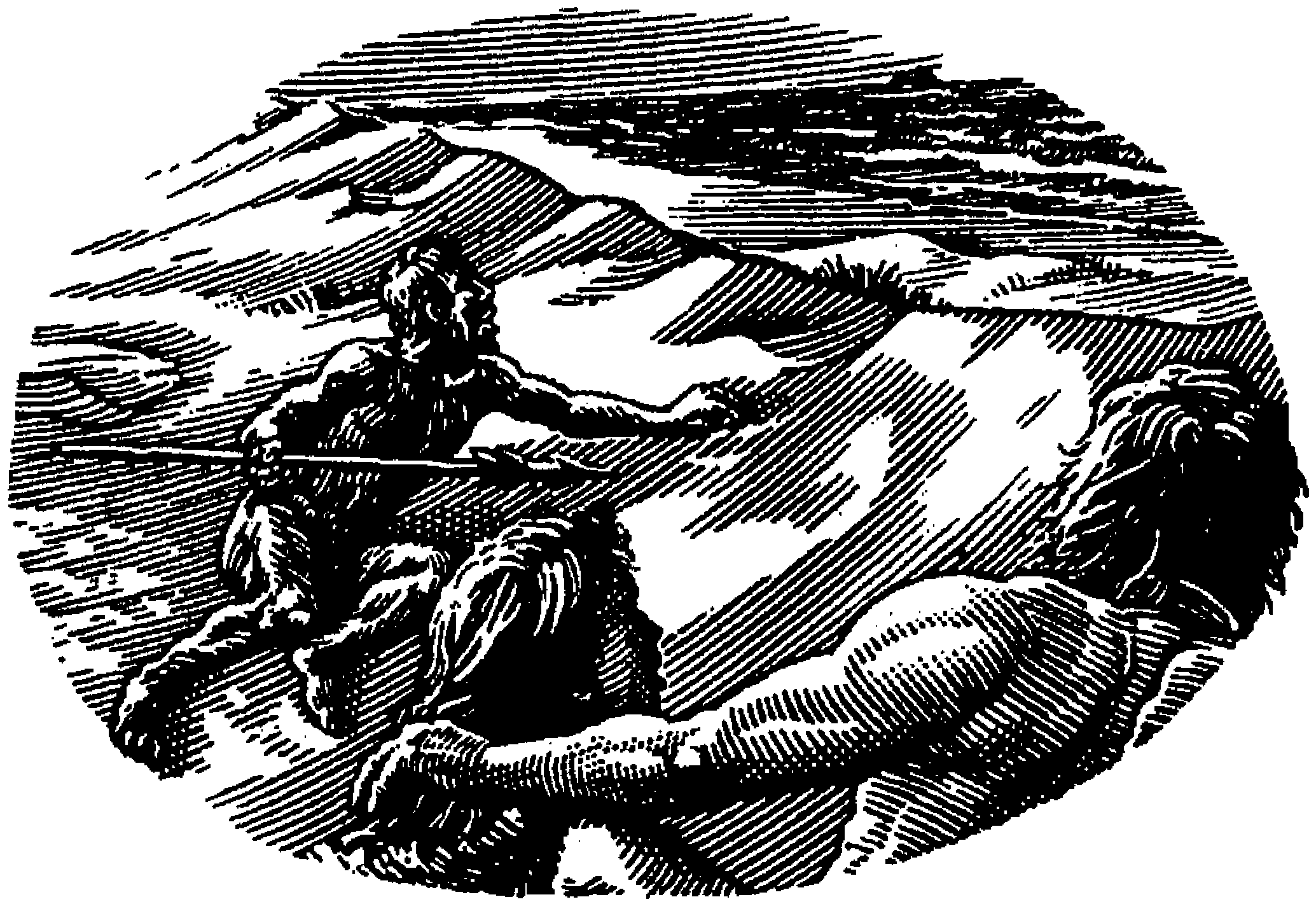 Калалек лежеше зад издигащата се над тях дюна, размахваше копието си и крещеше обиди. Но внимаваше да не го забележат. Те изтичаха при него, легнаха и пропълзяха последните крачки, за да погледнат предпазливо над върха на дюната.