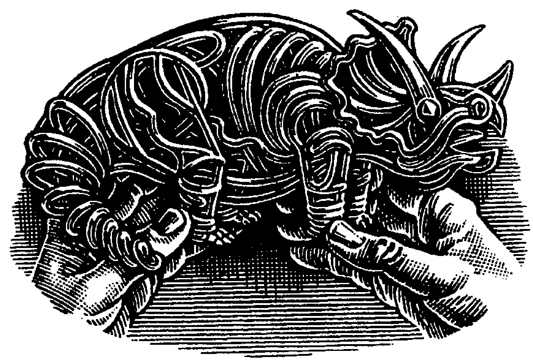 Ненитеск — вероятно същият, който Алипол му показа в онзи далечен, топъл ден. Туловището беше извито нагоре, трите рога завършваха с остри върхове, очите бяха от блестящи скъпоценни камъни. Имехей го вдигна гордо и Керик го пое. Обърна го така, че да отрази светлината, и усети същата радост, която преживя, когато Алипол за пръв път му показа скулптурата си. Заедно с радостта изпитваше и нещастие — Алипол беше отдавна мъртъв. Изпратен на сигурна смърт от Сталан. Е, и тя също беше мъртва, в това имаше някакво удовлетворение.