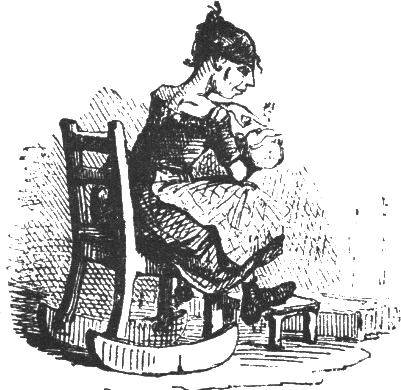 Решила най-после да смени темата, Дребосъчка извади ръкоделието си. В джоба си винаги носеше цяла кутия с материали за тази цел. Умът ми не побира как успяваше да свърши всичко — да накърми бебето, после да си побъбри с Мей, докато възрастната госпожа подремва. Така, в различни дейности, както бе свикнала, измина краткият следобед. Едва привечер, защото такъв обичай бе въведен по време на тези гостувания, тя свърши домакинската работа на Бърта — подкладе огъня, премете пред огнището и сложи чайник с вода, след което дръпна завесите и запали свещ. После изсвири една-две мелодии, и то много добре, на грубата арфа, изработена от Кейлъб за Бърта. Истината е, че Природата бе надарила малките й уши за музика, а и за скъпи обеци, стига да можеше да си ги позволи. Беше настъпил часът за чая и Текълтън се появи отново, за да участва в хапването и да прекара с тях вечерта.