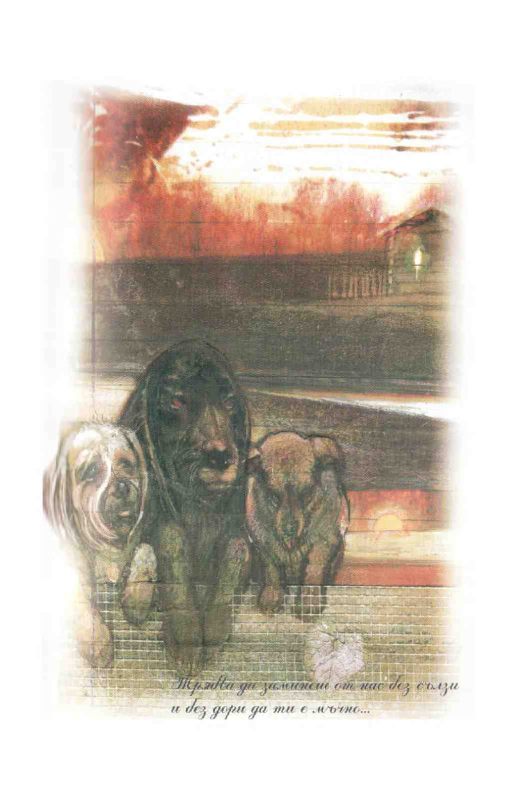 Следваха ги почти до моста на Мезен. Там по нанадолнището влакът се засили, изостана първо Мъничето, после Сивоокия, сетне се превърнаха двете застанали на насипа кучета в мънички точици, накрая съвсем изчезнаха…