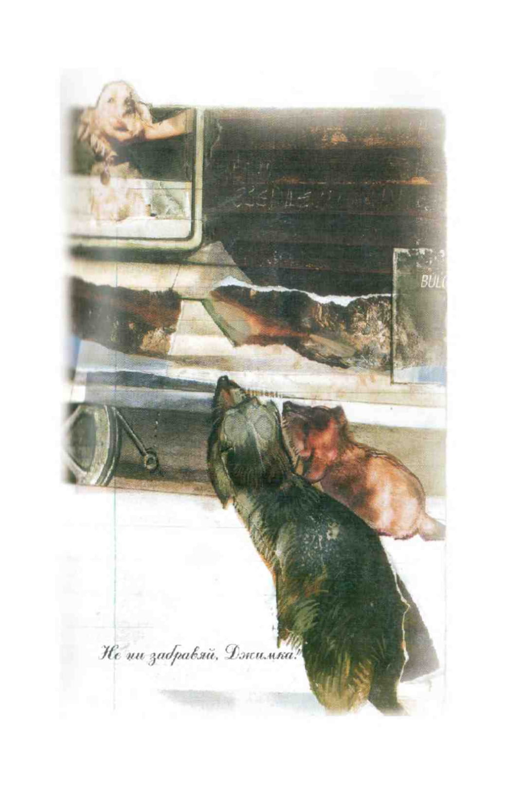 — Ние и така ще те обичаме! — увери го развълнувано Мъничето и започна да обяснява, че дори и нещо хубаво имало в това, някой от тях да замине за някъде. Да види света, който е вън от този свят на тайгата, да види хора и градове, дето, седейки, никога не би могъл да види. Да си има и втора родина — родината на чичо Миша и леля Маша, нещо, дето не на всяко куче е съдено да се случи… — А ти, Джимка, където и да ходиш — ходи и гледай и заради нас! — завърши разпалено Мъничето.