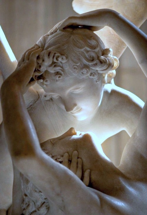 Антонио Канова (1757–1822) прибягва до идеалното равновесие на пирамидалната композиция, за да пресъздаде този прелестен миг и подчертае красотата и нежността, които свързват младите богове. Чистотата на белия мрамор и съвършенството на изпълнението придават на това скулптурно ваяние изтънчена елегантност, мека и фина чувственост. Скулптурната група е предназначена за английски ценител, но е откупена от Йоаким Мюра за замъка му Вилие в Ньойи. По-късно творецът създава нова версия, днес в Ермитажа в Санкт Петербург.