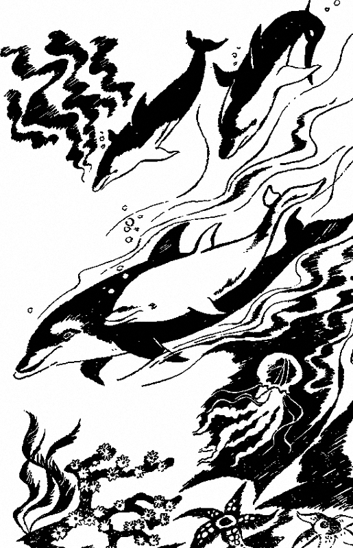 Настрани от стадото, до него, но все пак отделно, играеше самотно бяло делфинче. И колкото пъти то опитваше да се присламчи към връстниците си, майка му все го връщаше назад. Защото чувствуваше — сред черните делфини нямаше място за нейното грозно бяло дете. Неведнъж озъбеният водач, старият самец, се бе спускал върху му с яростен писък.