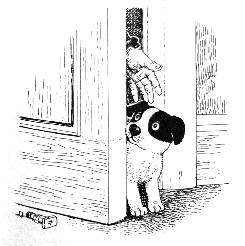 След като свърши работата си, Джефри се шмугна в креватчето, което беше уютно хлътнало от много употреба, и изведнъж осъзна колко му липсват майка му и приказката за лека нощ. Но преди да има твърде много време да мисли за това, вратата на детската леко се открехна и стана нещо чудесно. Една ръка побутна през прага малко кафяво-бяло кутре с къси крачета, увиснали ушички и неистово въртяща се опашница. Без да се помайва, то се спусна през стаята, скочи върху леглото и започна да ближе Джефри по лицето. Баба влезе в стаята подир кутрето и придърпа един стол до креватчето.