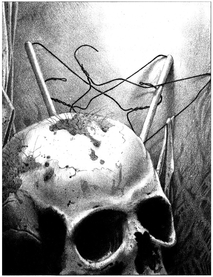 Тя млъква и си спомня. Лицето на Франки първо започна да почернява, очите му отначало помътняха, после увиснаха от орбитите. Устата му се отпусна, долната му устна се обърна навън като сенник с развалена пружина. Викът му — от изненада, болка или и двете? — отнесе зъбите от разлагащите му се венци като жълто-черен гейзер. Долната му челюст се откачи, брадичката падна чак до гърдите му, гърлото му се разтвори с отвратителен звук като от раздран плат. Бузите му се разпаднаха като изгнили платна, отделяйки реки гной…