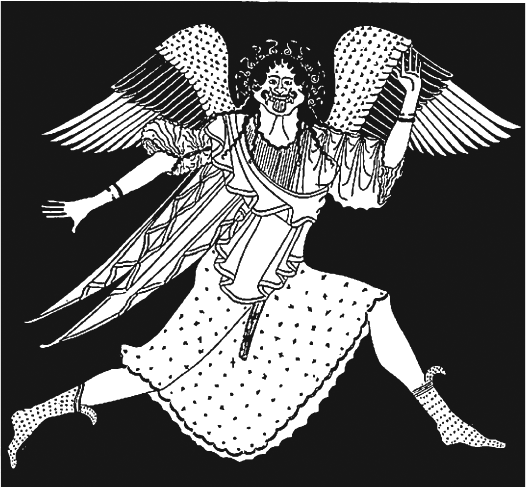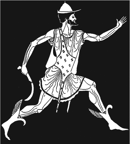 Фигура 45б. Персей бяга с главата на Медуза в торбата си (червенофигурна амфора, Гърция, V в. пр.н.е.)